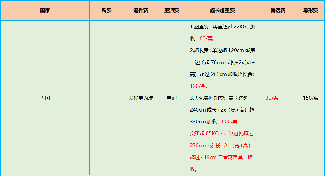 以上价格已含燃油费,清关费,派送费,但不包含超长超重等杂费,以及进口清关时所产生的税费,或因客户申报与实物不相符引起的查验费和仓储费。